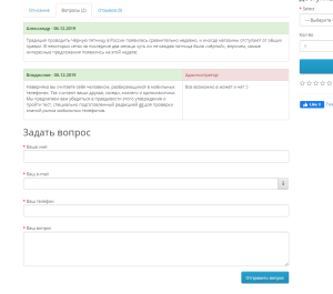Вашими клиентами с ответами администрации магазина... Все вопросы и ответы записываются в базу и выводятся в товаре в зависимости от выбранного статуса !