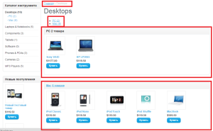 Модуль "Товары блоками" позволяет отображать на странице категории товары блоками - в каждом блоке товары из под категории данной категории, в самой нижней под категории список товаров отображается как обычно. Данное изменение также учитывается в хлебных крошках, также исправлено отображение последней ссылки в хлебных крошках (в категориях и в товаре) - последняя ссылка не отображается ссылкой. По умолчанию модуль сделан под дефолтный шаблон, если ваш шаблон сильно отличается от дефолтного то, вероятно, потребуется доработка под него.