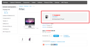- В списке товаров в категориях видны акционные товары, при нажатии на ссылку открывается краткое описание акции.
