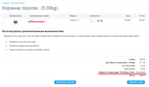 - Акционные товары можно отображать в корзине вместе с остальными товарами.