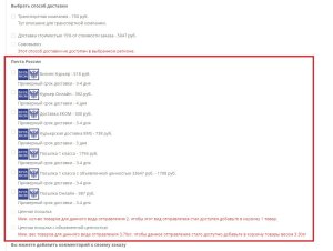 • Ограничения в зависимости от суммы и веса заказа есть не только для каждого вида отправления, но и общие для всего модуля.