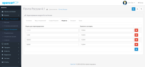 • Каждому виду отправления для коррекции цен можно назначить дополнительно вес упаковки и мин. стоимость доставки данного отправления.