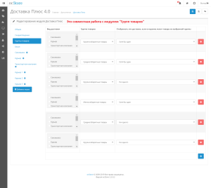 - Создание доставок в зависимости от стоимости и веса заказа.