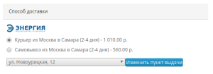 Энергия - Международная Транспортная Компания. Модуль производит расчет стоимости и сроков доставки через API Энергия.
