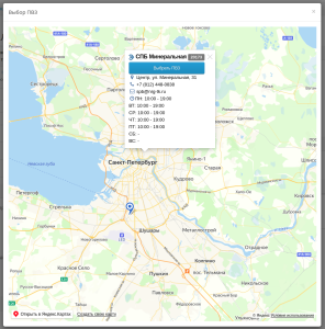 - отображение у ПВЗ на карте: адреса, режима работы, телефона, email, кода