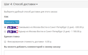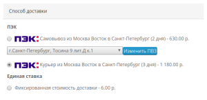 - отображение у методов доставки: логотипа, срока доставки, города отправления, города доставки, адрес выбранного ПВЗ
