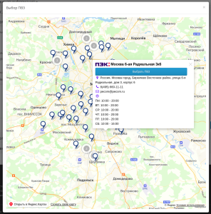 - отображение у ПВЗ на карте: адреса, режима работы, телефона, email