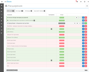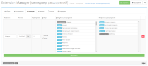 - Привычное всем разделение расширений на типы (модули, доставки, шаблоны...) заменено на фильтры. При установке модуля создаются фильтры, повторяющие по содержимому типы расширений, но теперь каждый фильтр можно удалить, изменить набор расширений или создать новый фильтр со своим набором расширений.