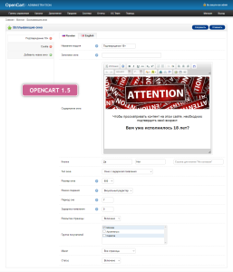 Оформлять и заполнять окна информацией можно через визуальный редактор или в режиме HTML-кода.