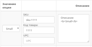 Дополнительные поля "SKU", "Модель", "UPC" и "Описание" к значениям опций. для OpenCart 2 и OpenCart 3