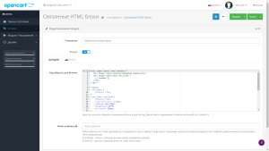 Модуль позволяет создавать неограниченное количество HTML блоков (HTML контент) и привязывать их к категориям / товарам / производителям. И выводить все связанные блоки на странице товара / категории / производителя.