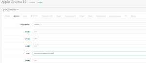 Модификатор добавляет дополнительное поле с названием ean2 в форму редактирования/добавления товара
