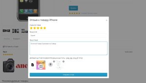 Модуль расширяет стандартные возможности отзывов, позволяя прикреплять изображения. Изменено отображение отзывов, а так же написание отзыва в всплывающем окне. В административной части так же добавлена возможность добавлять и удалять прикреплённые изображения. Добавлена возможность редактирования отзыва.