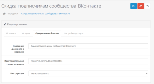 Модуль скидок при подписке на сообщество ВКонтакте - это удобный и эффективный инструмент, который помогает привлечь и удержать целевую аудиторию, а также повысить продажи и улучшить имидж Вашего сайта и сообщества ВКонтакте.