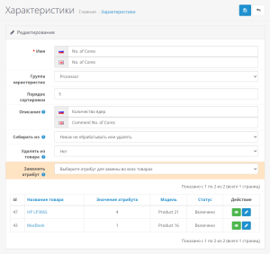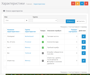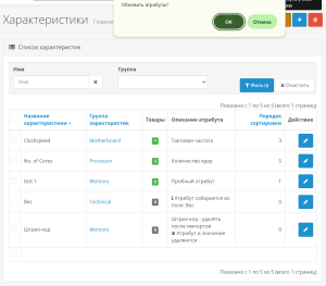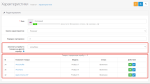 - Вывод списка товаров, содержащих атрибут с переходом в редактирование товаров и просмотр на сайте