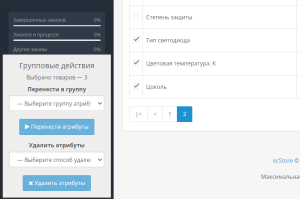 - удаление выбранных атрибутов из всех товаров с этими атрибутам (отвязка от товаров)