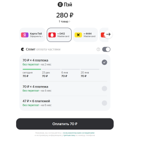 на фронте при оформлении заказа метод оплаты Яндекс Пэй и Сплит