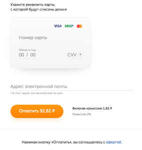 - Возможность добавления комментария для дальнейших действий в письмо о успешной оплате(использование переменных таких как «номер заказа», «сумма заказа», «комиссия» и html тегов)