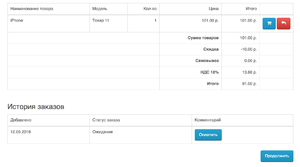 - Контроль наличия товара (если в корзине есть хоть один товар не вналичии, то работает отложенная оплата, если все в наличии то стандартная)