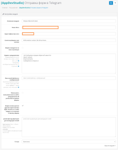 8. Нажмите на кнопку редактирования [AppDevStudio] Отправка форм в Telegram, введите данные формы, токен бота и идентификатор чата и нажмите Сохранить.