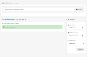 3. В фильтре введите параметры выгрузки и нажмите на кнопку Фильтр.