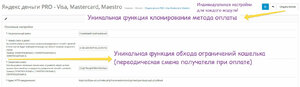 - Индивидуальные настройки для каждого метода оплаты и клонов