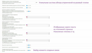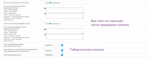 - Отображение своего текста на платежной странице. Назначение платежа и тд.