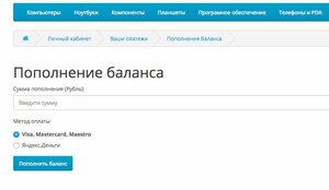 Уникальная система пополнения личного счета покупателя БАЛАНС МАГАЗИНА (Дальнейшая оплата заказов с баланса или ручное списание администратором суммы с баланса)