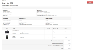 - шаблоны экспорта: печать данных заказа, печать таблиц (списков) товаров и заказов, экспорт в Excel списков товаров и заказов