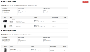 - шаблоны вывода данных: страницы заказов (включают все остальные шаблоны), таблицы заказов, товаров и истории, фильтры заказов и товаров, списки значений (используются для вывода и редактирования дополнительных данных)