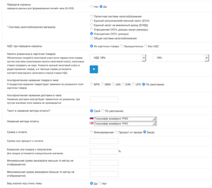 - Возможность включения или отключения передачи корзины для формирования онлайн чеков