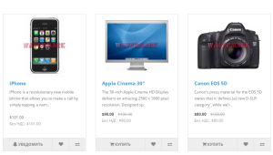 Модуль позволяет защитить фото от копирования, добавив к ним водяной знак (Watermark) и скрыв путь в оригинальному файлу изображения товара. В качестве защитного знака используется изображение.