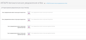 Модуль позволяет задать индивидуальный текст для каждого статуса заказа раздельно для нового и смены статуса, а также отдельный текст для администраторов (для администраторов возможно задать несколько номеров телефонов)