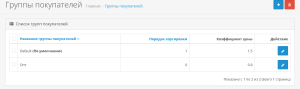 - Зайдите в нужную группу покупателя и укажите нужный коэффициент, например 1.2/2.0/0.9 и тд